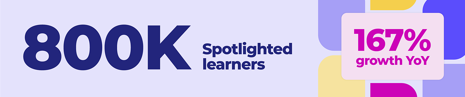 In 2025, that demand translated into real growth. More than 800,000 learners opted into Spotlight directories across 60 organizations — up 167% year over year. At the same time, directory searches from employers and talent sourcers rose more than 5x. These directories are becoming one of the largest verified talent networks in the world, built around the brands learners trust, not a single centralized platform.