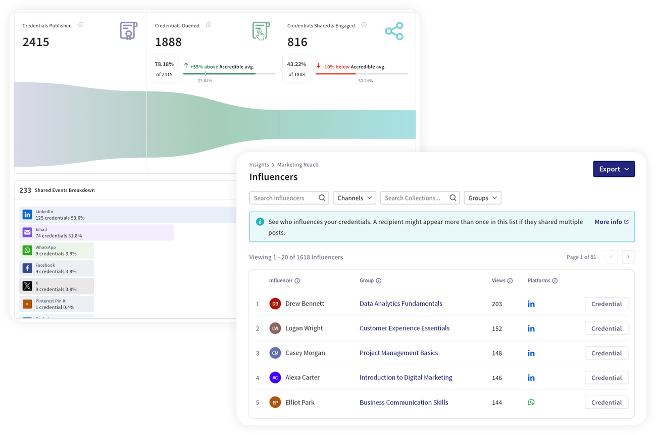 From the start, Accredible’s dashboards gave Kelley a clear, real-time view of badge activity: