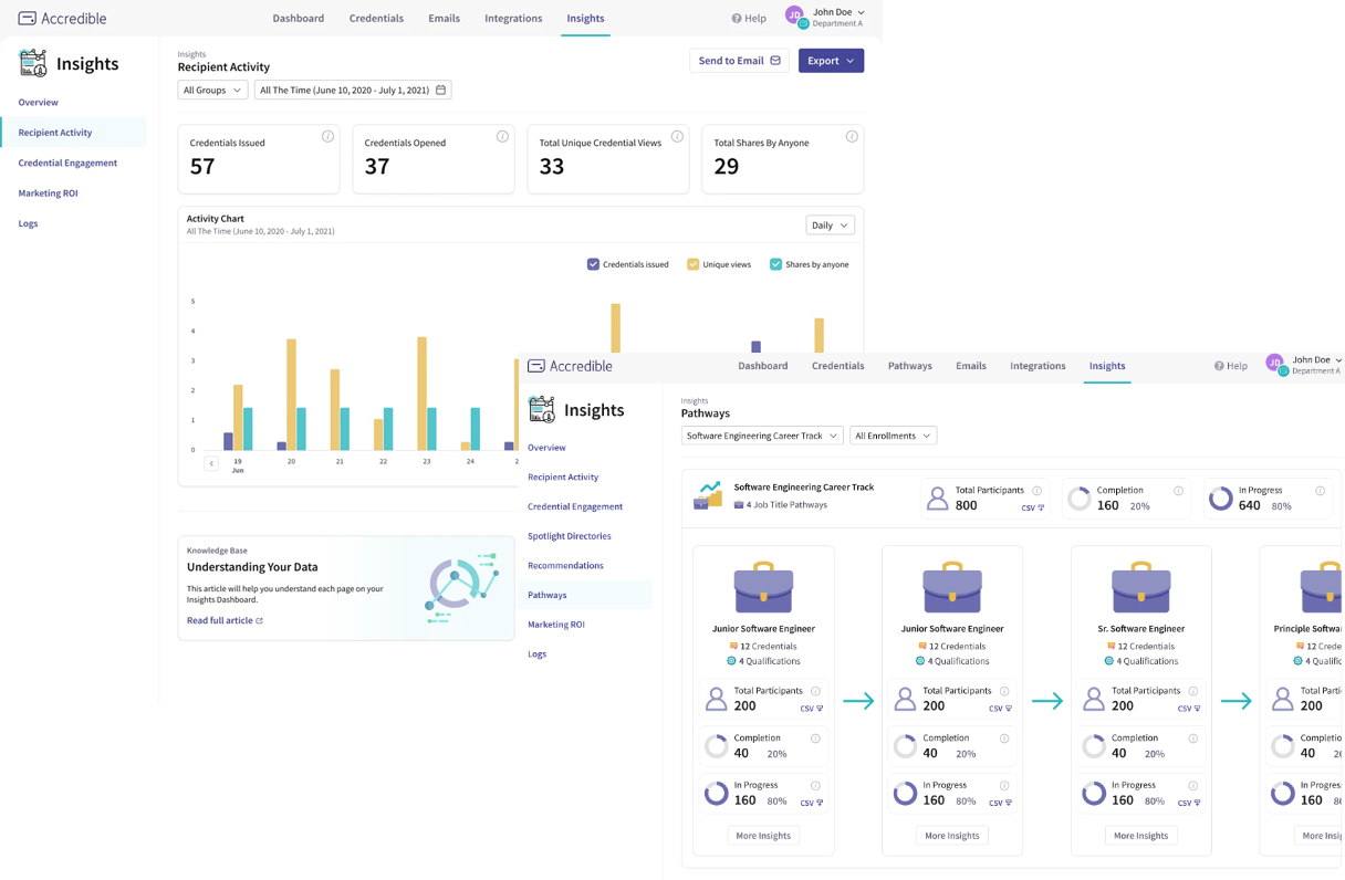 Why This Matters: Data-driven insights demonstrate program success and highlight areas for improvement. For credentialing organizations, analytics offer visibility into learner engagement, credential performance, and ROI — critical for refining strategies and driving growth. Learners also benefit when organizations leverage data to tailor programs that better align with career goals and industry needs.