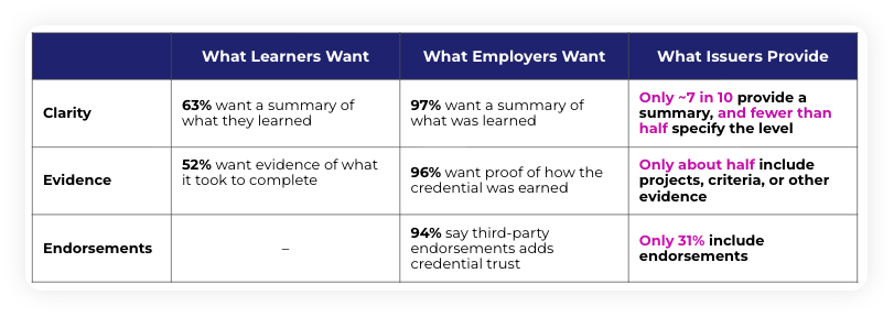 Employers say they’re paying attention. Many click into digital credentials to view details, verify authenticity, or bring them up in interviews — and 97% consider them essential or valuable when making hiring decisions.