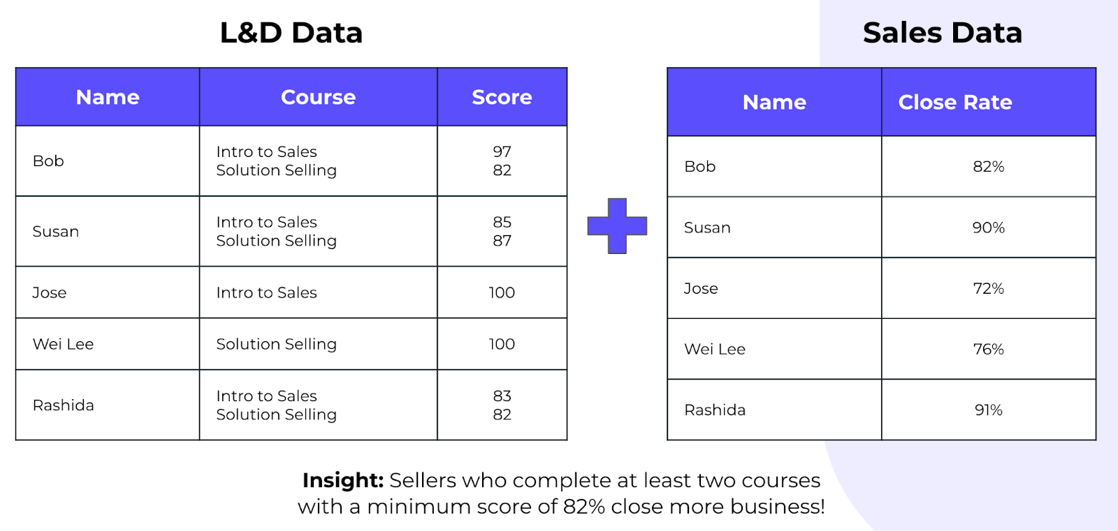 Correlate credential data with outcomes like sales, CSAT, or retention — even if you start in a spreadsheet.
