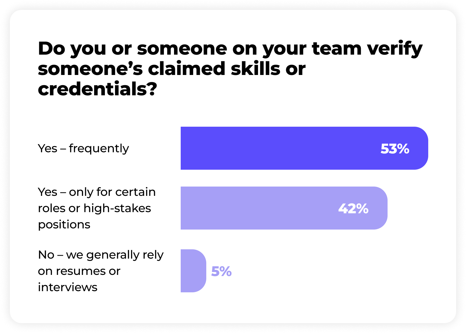 Because of this, it’s no surprise HR and talent leaders report it’s common for them to verify candidates' claimed skills or credentials, which can be a time-intensive and complex process.