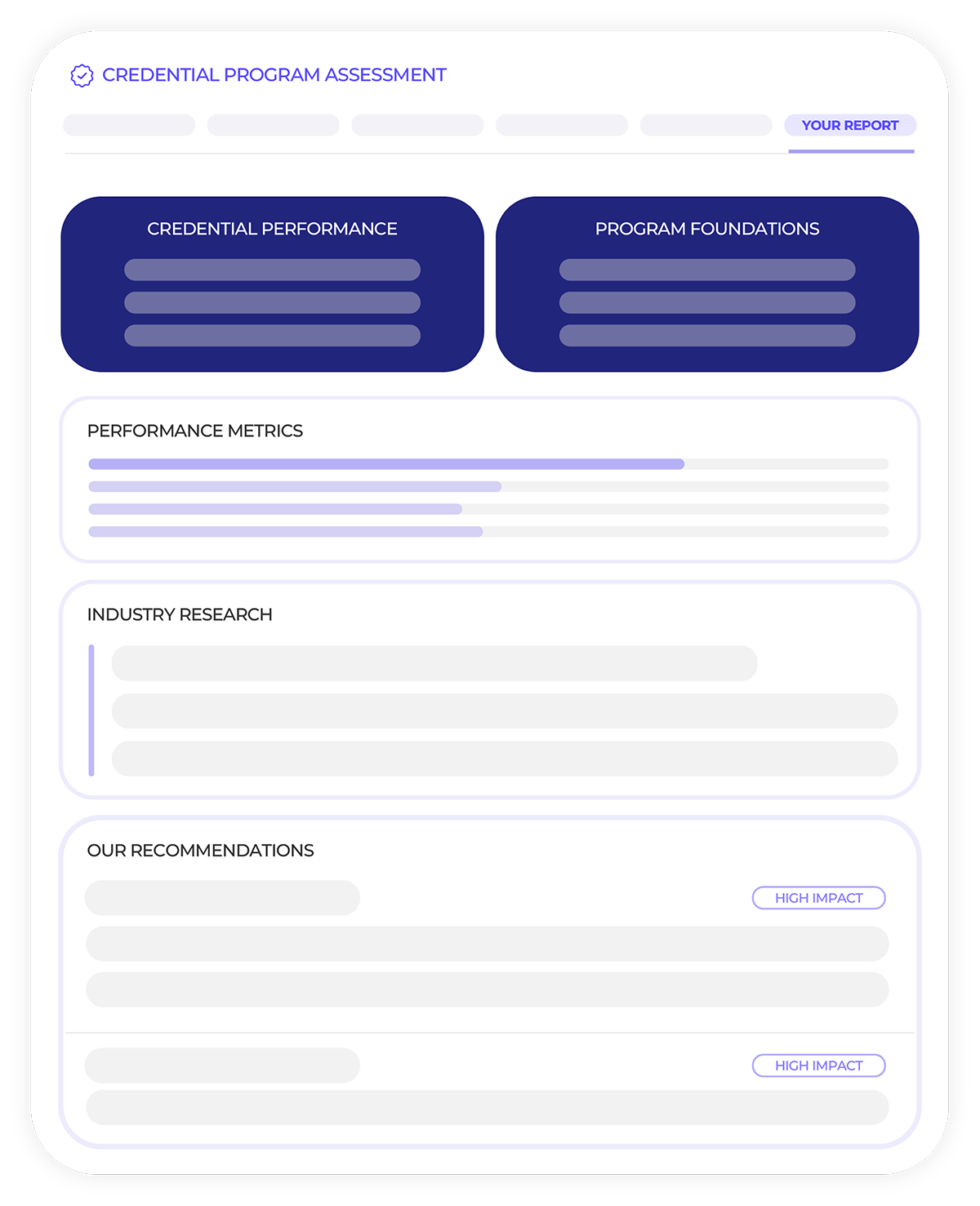 Built on insights from over 2,300 credentialing programs, the Credential Program Assessment gives you a clear picture of where you stand and specific recommendations for what to do next.